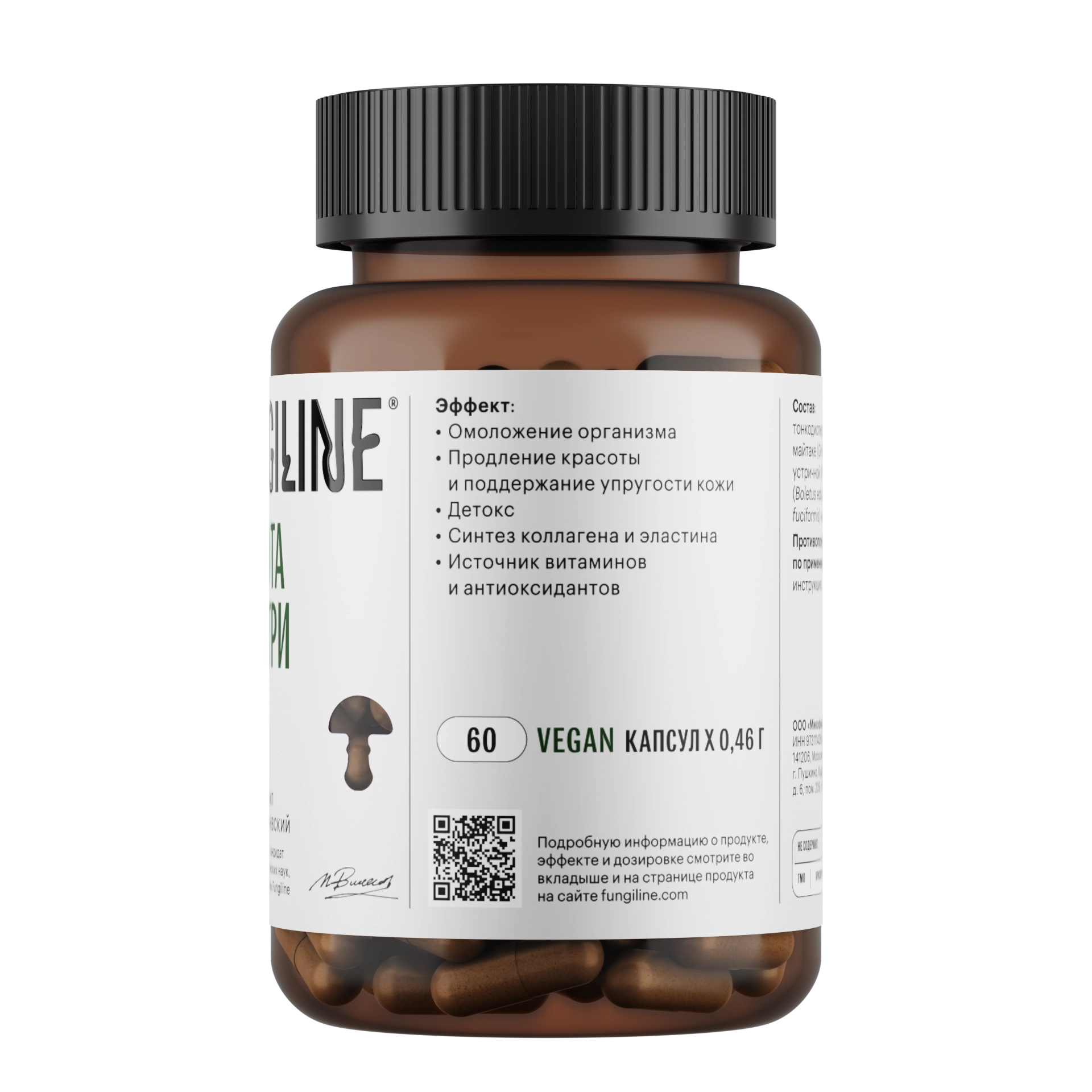 - Болетус (Boletus edulis), известный также как белый гриб, широко признан за свои питательные и вкусовые качества. Он богат белками, витаминами и антиоксидантами: полифенолами, витамином С, глутатионом, эрготионеином, ликопином, бетакаротином, витамином Е и др. Эти вещества активно борются со свободными радикалами, которые с возрастом неизбежно накапливаются и повреждают клетки нашего организма, помогая минимизировать риск развития хронических возрастзависимых заболеваний. Болетус способен снизить цитотоксичность и ингибировать некоторые провоспалительные цитокины, снижая риск развития онкологических заболеваний и хронического воспалительного статуса организма. Также белый гриб способен изменять состав микробиоты кишечника при серьёзных дисбиотических состояниях, предотвращать запоры, улучшать пищеварение и снижать уровень гормона грелина, отвечающего за чувство голода. Ежедневное применения болетуса поможет снизить лишний вес, а значит, предотвратить риск развития сердечно-сосудистых заболеваний и эндокринных нарушений в организме.