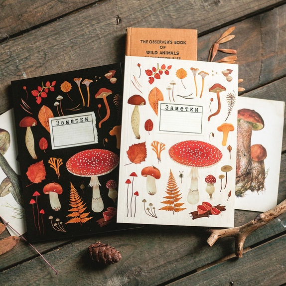 Блокнот с ярким грибным принтом от российской художницы Александры Дворниковой.