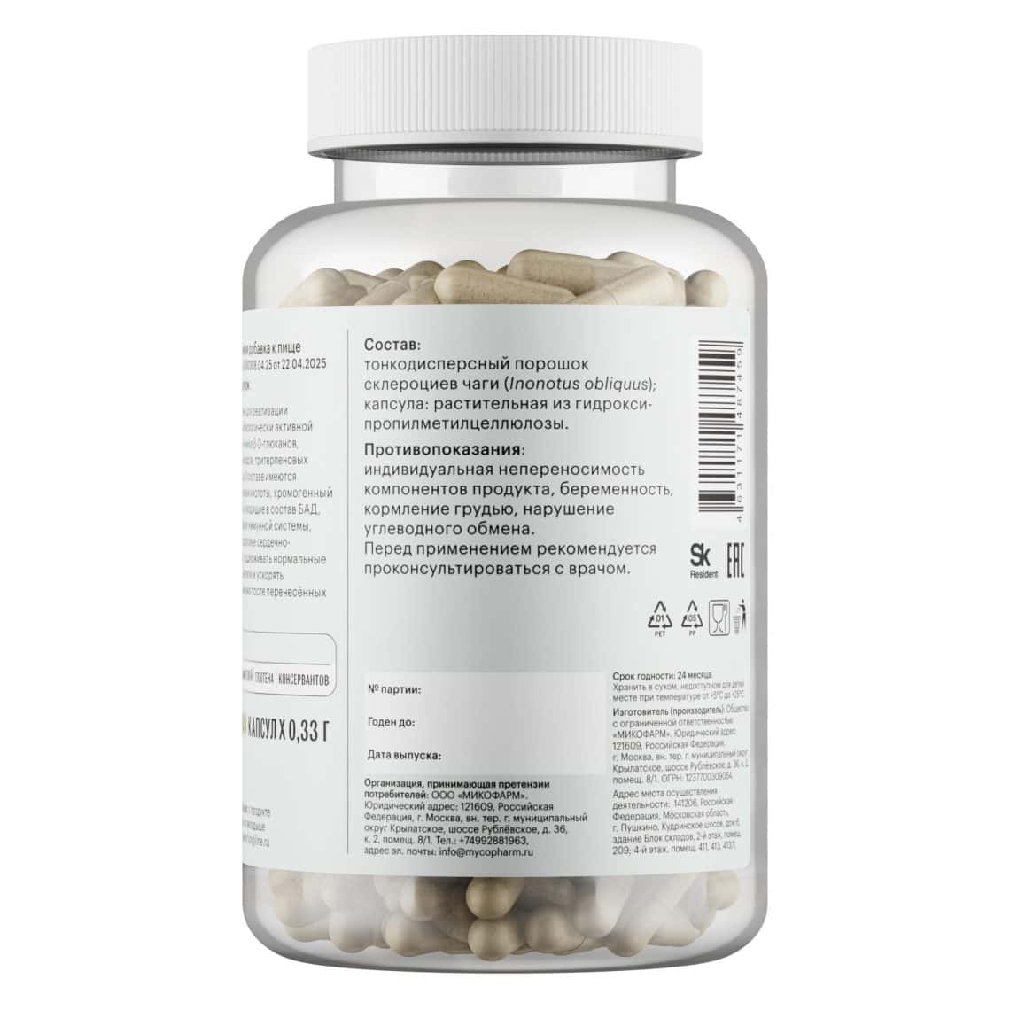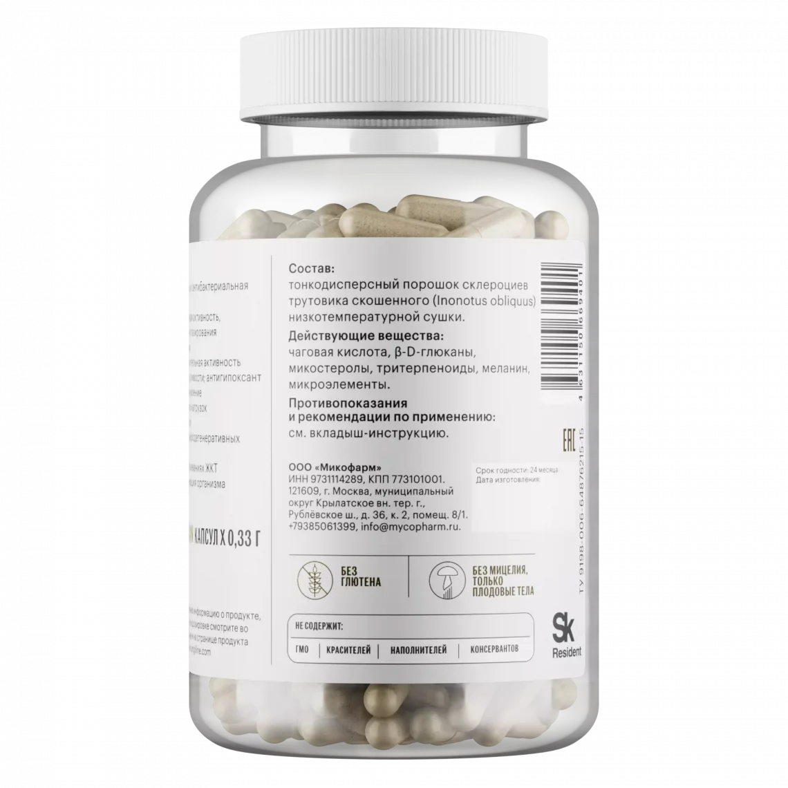 Чага (лат. Inonotus obliquus), или березовый гриб, — настоящий король лекарственных грибов, известный на Западе как «русский суперфуд». Этот гриб богат бетулином, полифенолами и особыми хромогенными комплексами, которые придают грибу его темный цвет и обладают сильными антиоксидантными и противовоспалительными свойствами. Прием чаги помогает повысить иммунитет и усилить сопротивляемость организма к различным патогенам и может быть особенно полезен в сезон простудных заболеваний. Особенно полезна при гастрите, язве и других воспалительных заболеваниях ЖКТ