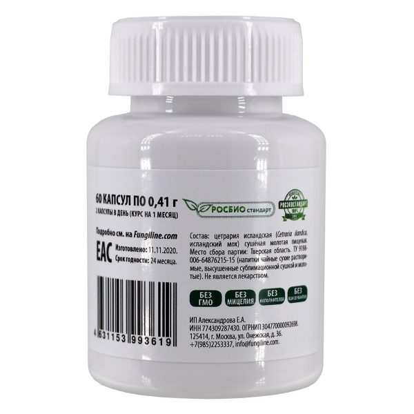 Для приготовления активированного (промороженного) тонкодисперсного порошка использованы слоевища лишайника цетрарии исландской (Cetraria islandica), собранные в Тверской области. Сушка лишайников производится при температуре 30-35°С, что обеспечивает полное сохранение фармакологических качеств.