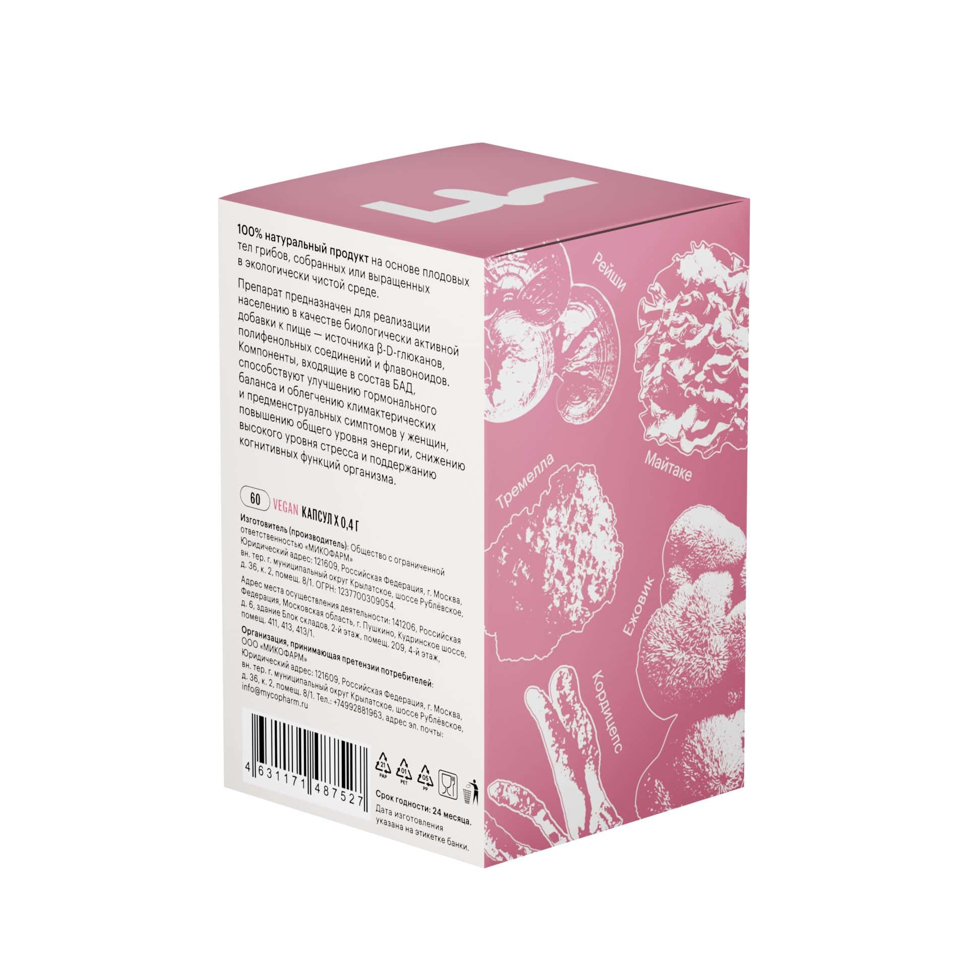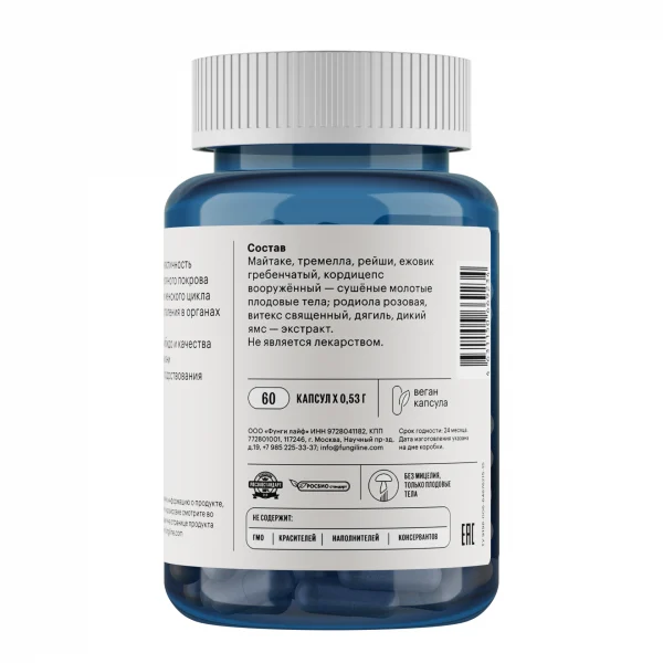 Ежедневная поддержка для женщин — универсальный комплекс на каждый день, в состав которого входят плодовые тела лекарственных грибов, а также экстракты растений. Комплекс рассчитан на укрепление и поддержку здоровья с учетом физиологических потребностей женского организма. Его можно использовать самостоятельно, а также как основу для поддержки организма, которую можно усилить за счет других препаратов нашей грибной аптеки.