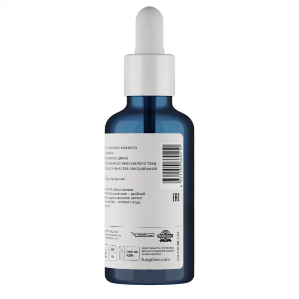 средство для снижения симптомов ПМС, нарушений менструального цикла, стимулирует фертильность и корректирует менопаузальные состояния. Способен мягко влиять на гормональный баланс женского организма, стимулируя гипофиз на выработку лютеинизирующего гормона. Улучшает чувствительность дофаминовых рецепторов в головном мозге, снижает пролактин, увеличивает либидо и мотивацию. Снимает мышечное напряжение в период ПМС и менопаузы, снижает состояние нервозности и тревоги. Влияет на выработку мелатонина, гармонизируя женские биологические часы.