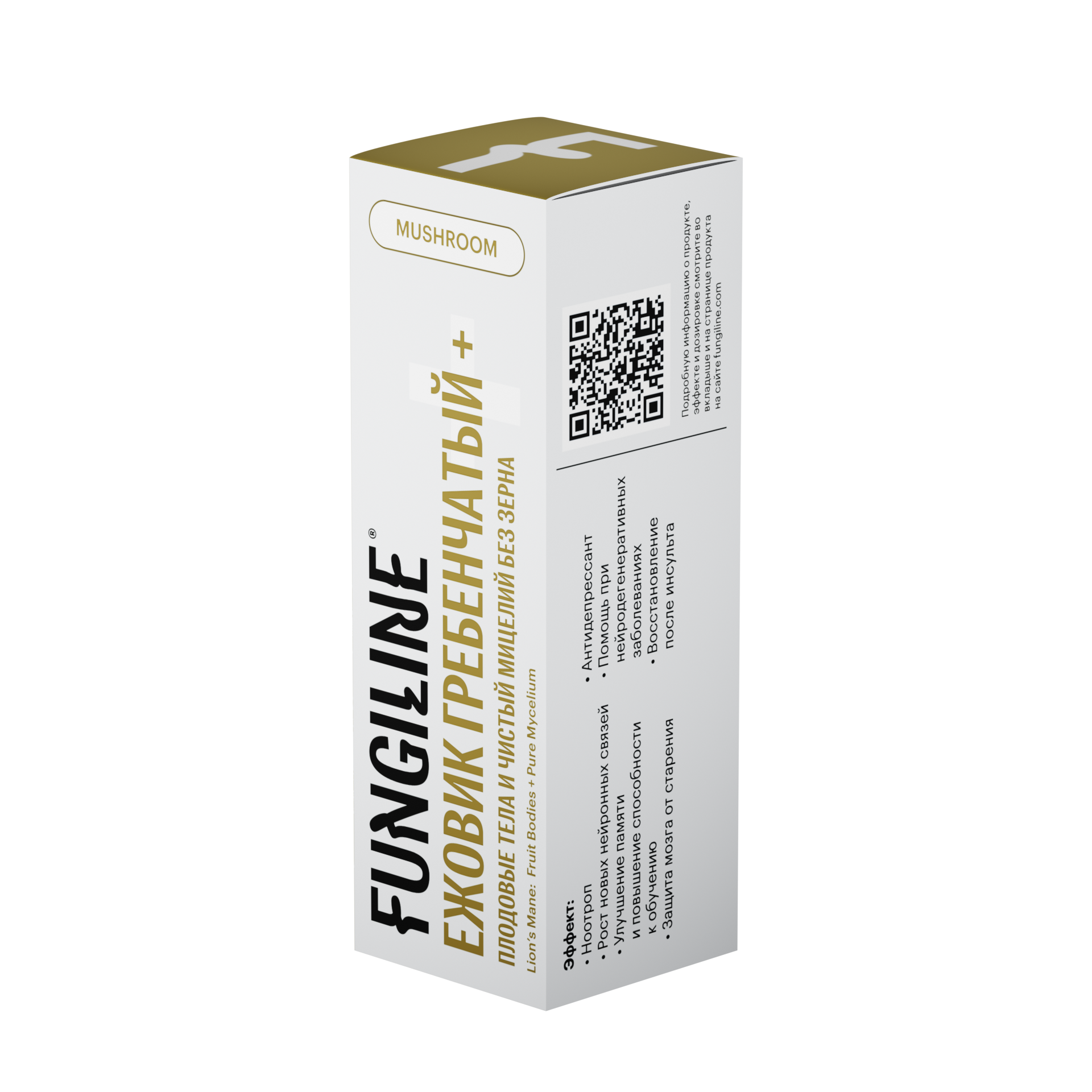 «Ежовик гребенчатый +» это смесь из плодовых тел гриба с чистым культивированным незерновым мицелием. Такой композитный продукт содержит ещё больший спектр биологически активных соединений с доказанным фармакологическим потенциалом и обладает более выраженным ноотропным действием, в первую очередь за счёт увеличения количества эринацинов — веществ, способствующих росту нервных окончаний и снижающих нейровоспаление в головном мозге. Эта комбинация ещё больше позволяет повысить эффективность от процессов обучения и запоминания информации, а также способствует поддержанию здоровья мозга и является эффективной профилактикой нейродегенеративных заболеваний