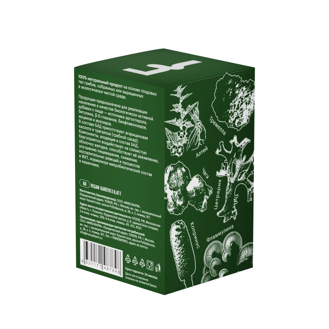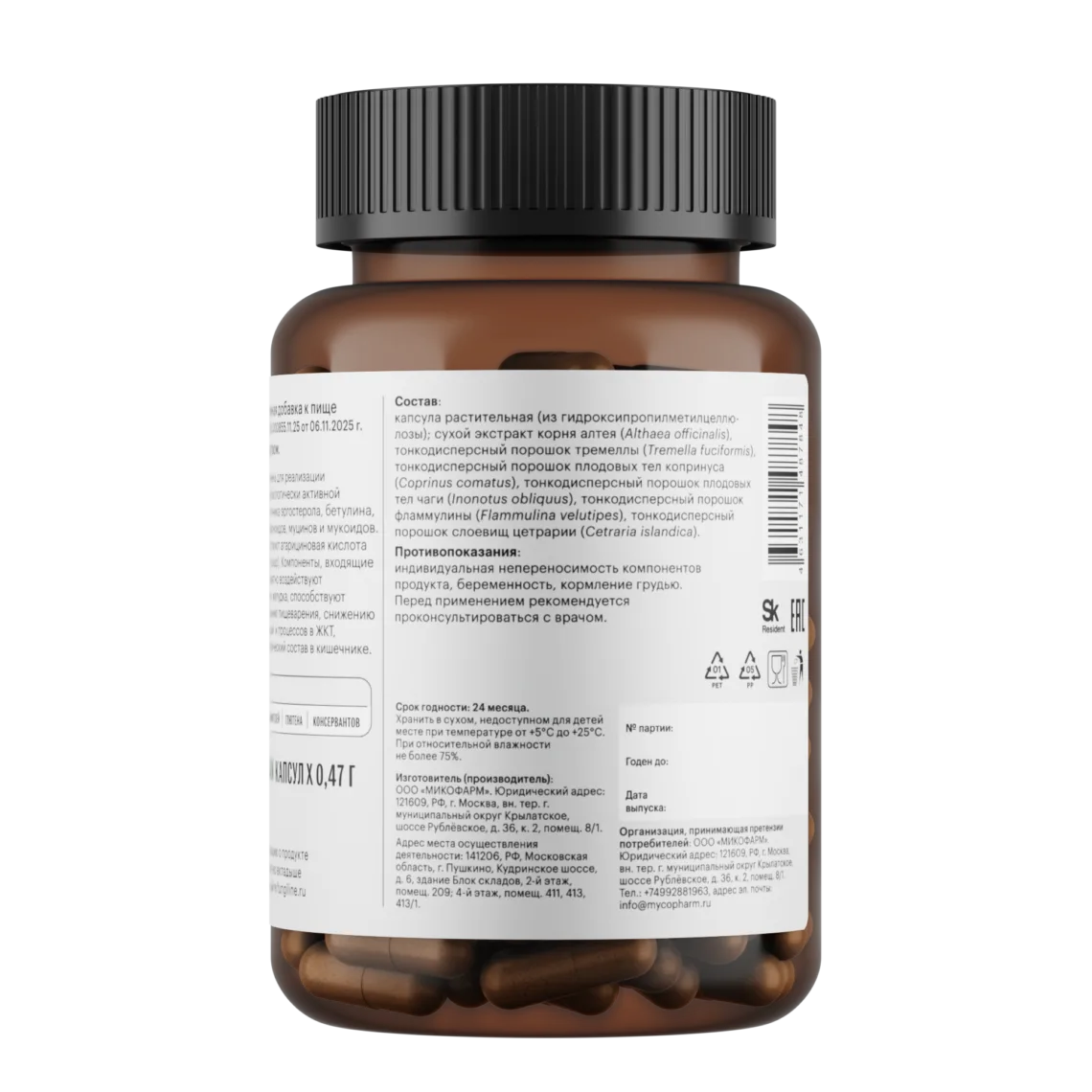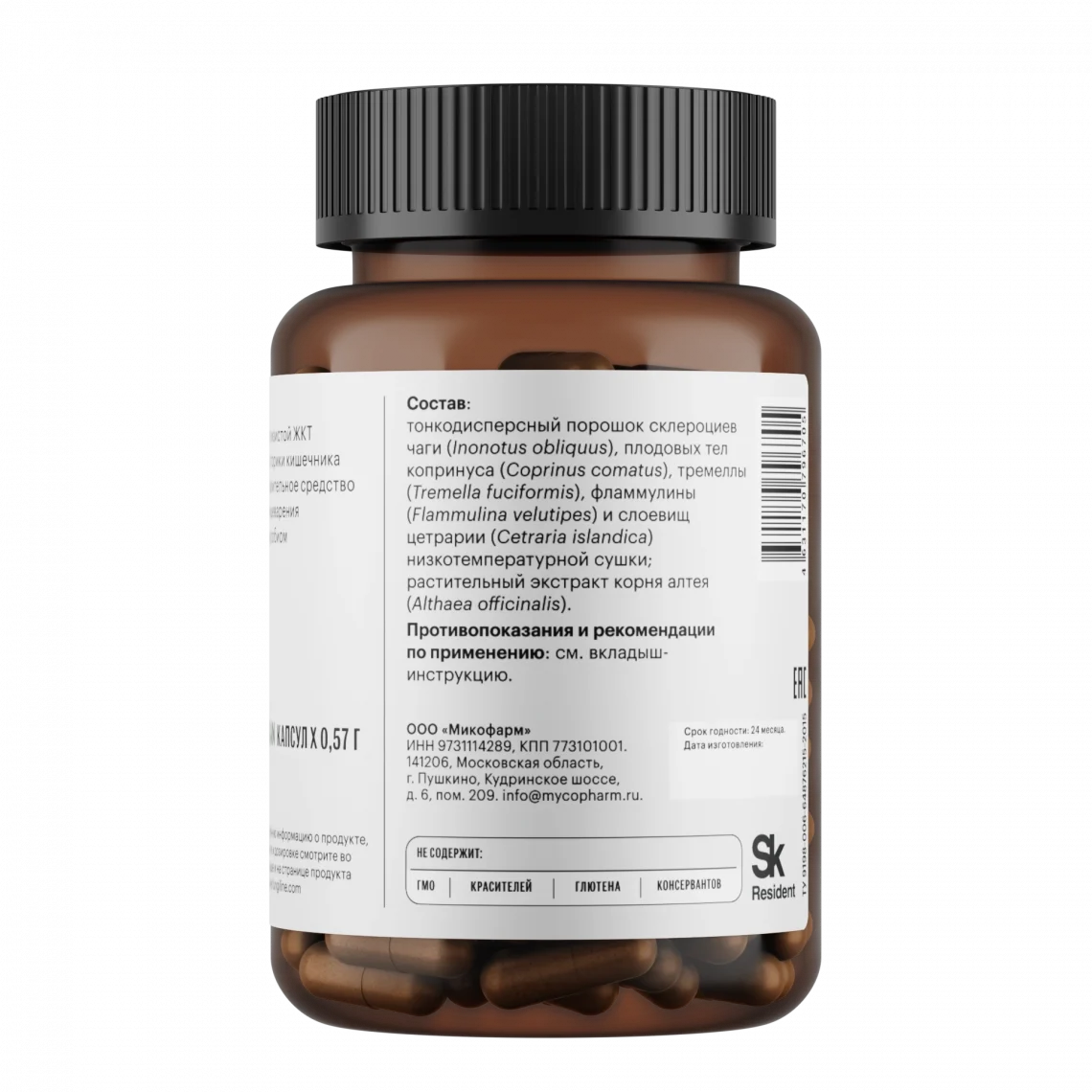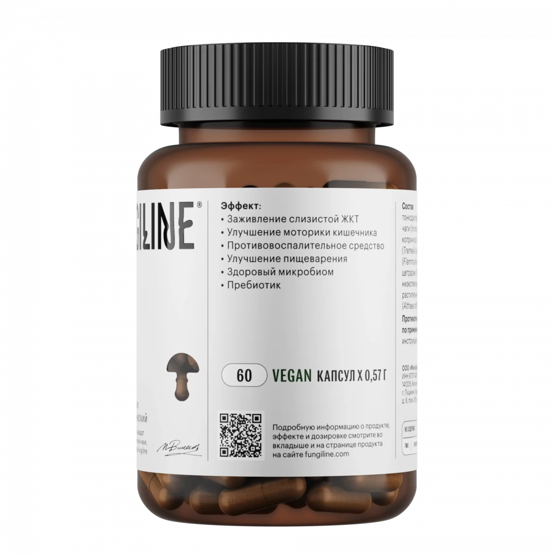 Полисахариды копринуса и чаги способствуют росту полезных бактерий. Комплекс работает как пребиотик, устраняя дисбиоз и восстанавливая нормальное пищеварение.