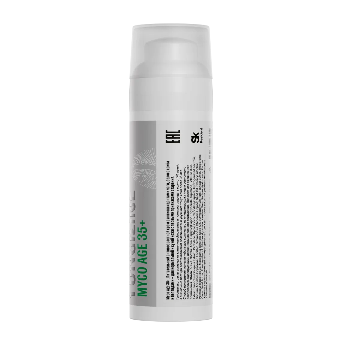 Myco Age 35+ — питательный антивозрастной крем с антиоксидантами чаги, белого гриба и пептидами для нормальной и сухой кожи с первыми признаками старения. Грибные экстракты активируют клеточное обновление и помогают защищать кожу вредного воздействия УФ-лучей, а сигнальные пептиды восстанавливают эластичность и улучшают тонус кожи после 35 лет.