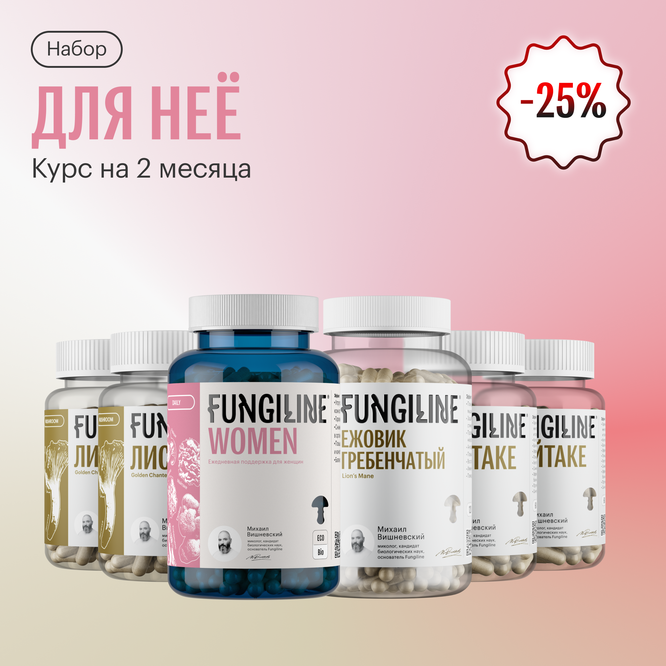 Daily Women — 1 капсула, Ежовик Гребенчатый — 2 капсулы, Лисичка — 1 капсула. Запить теплой водой (30-40 ℃) — 1 стакан.