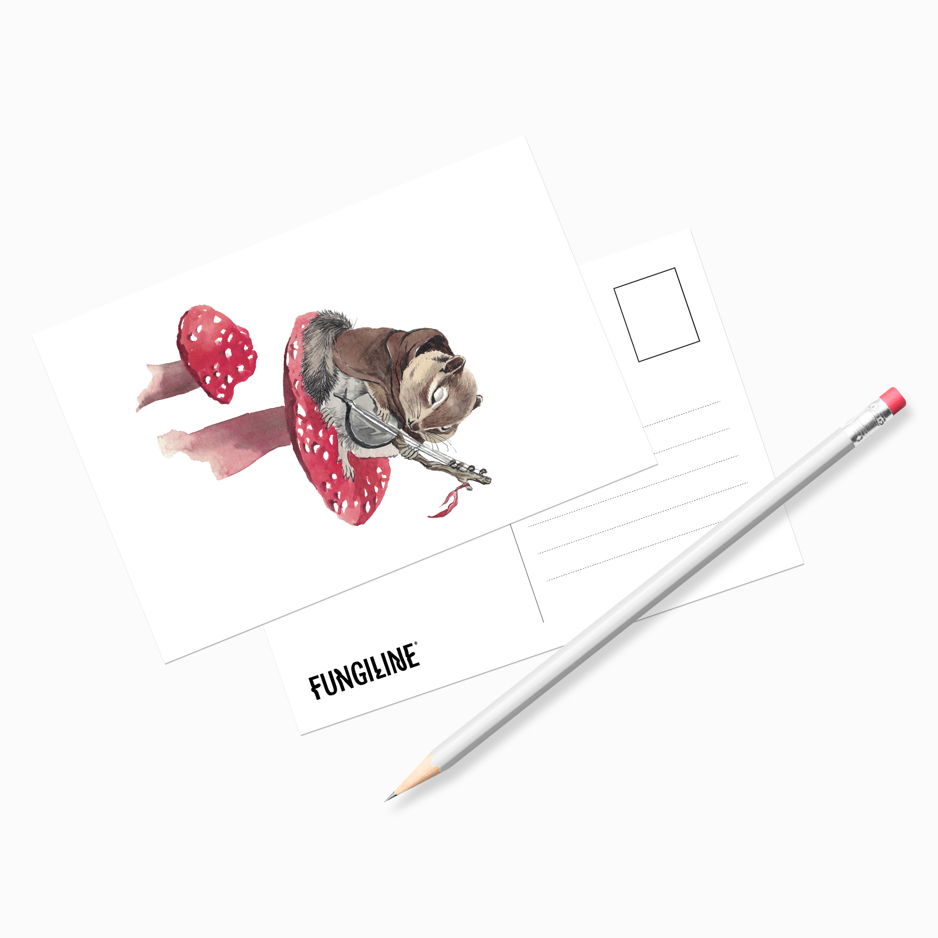 Почтовая открытка для оригинальных поздравлений «Белка и мухомор» от FungiLine.