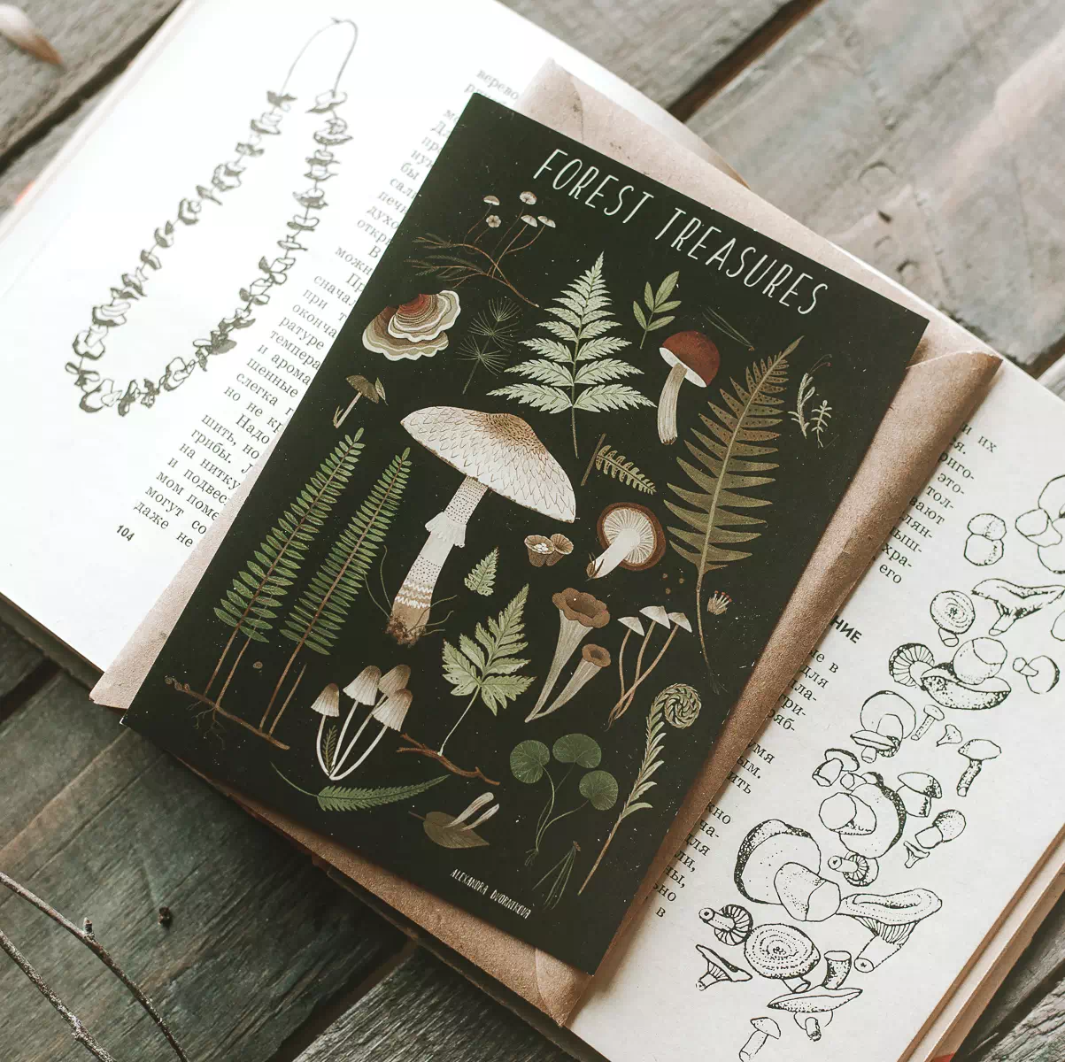 В наш электронный век трудно сделать поздравление более личным, чем если написать его от руки на бумаге. А ещё более индивидуальным и памятным оно будет, если использовать для этого оригинальную и необычную открытку с изображением грибов, папоротников и других лесных сокровищ. Если вы знаете, что ваш адресат любит природу, ходит в походы или увлекается биологией, это будет беспроигрышным способом его порадовать.