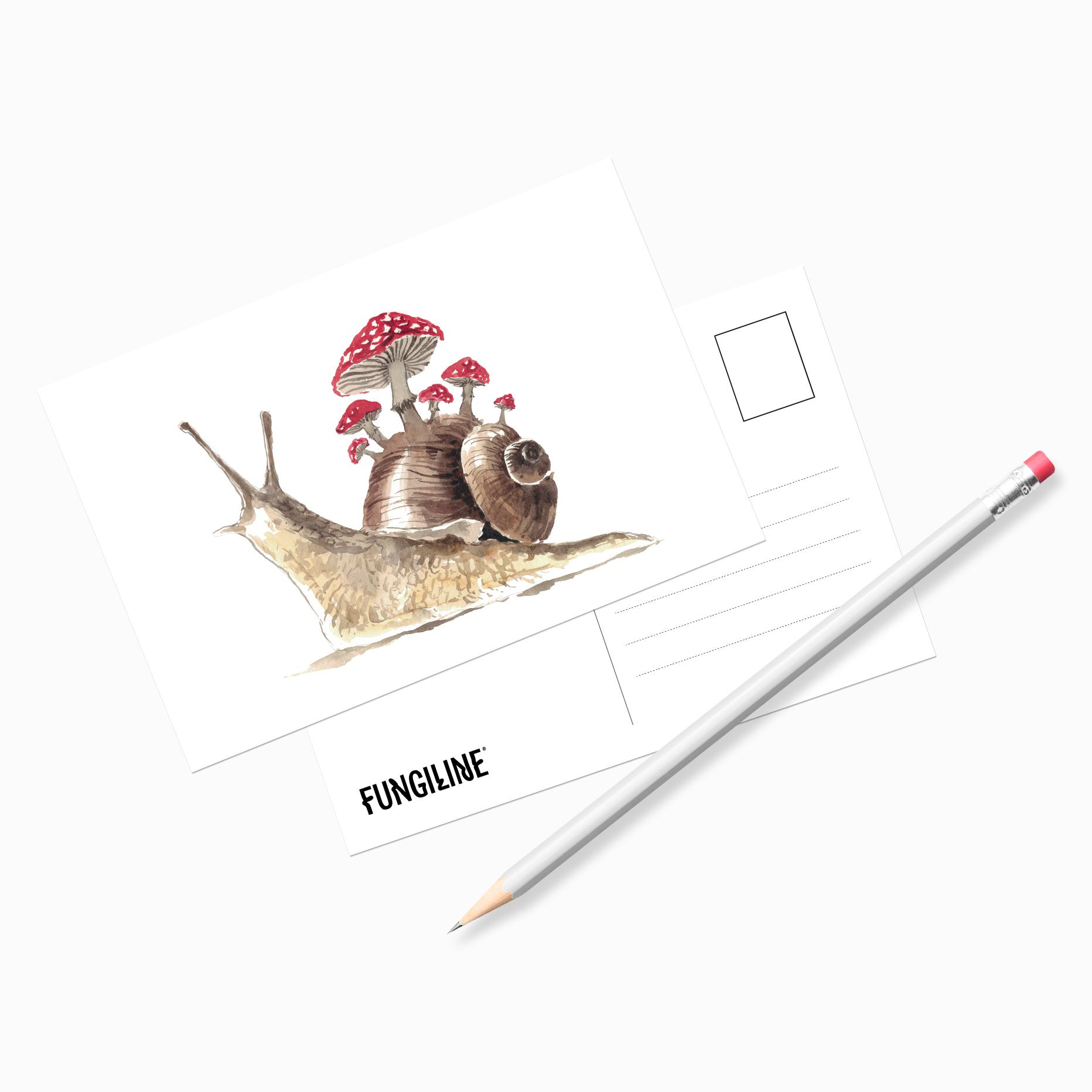 Почтовая открытка для оригинальных поздравлений «Мухоморная улитка» от FungiLine.