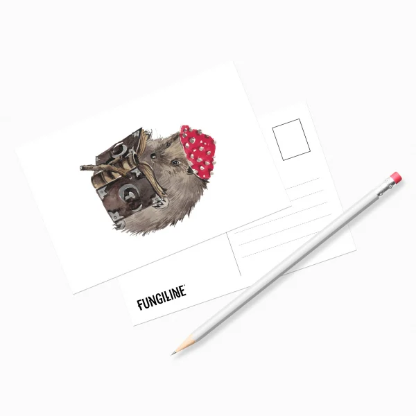 Почтовая открытка для оригинальных поздравлений «Ёжик с книгой» от FungiLine.