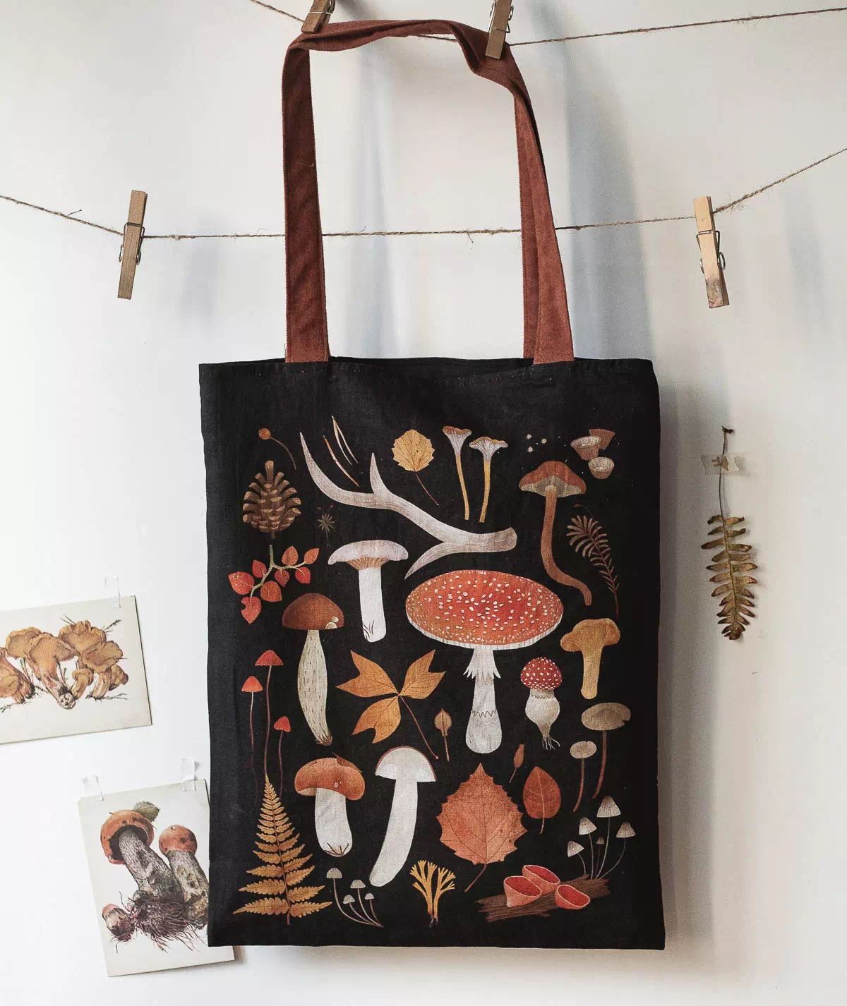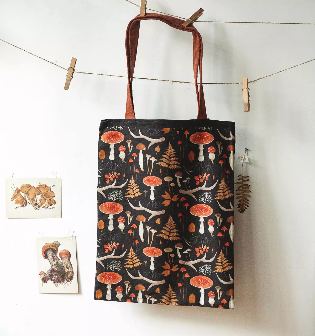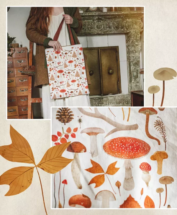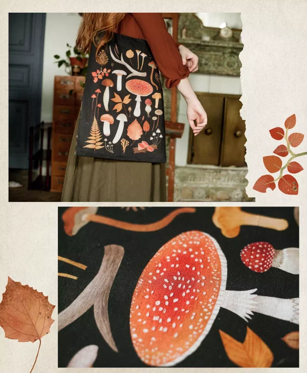Сумка из ткани легкая, приятная на ощупь, выдерживает многочисленные стирки. Колоритный рисунок грибов сохраняет свою яркость, а изделие – первоначальную форму. В наличие два цвета – тёмный и светлый.