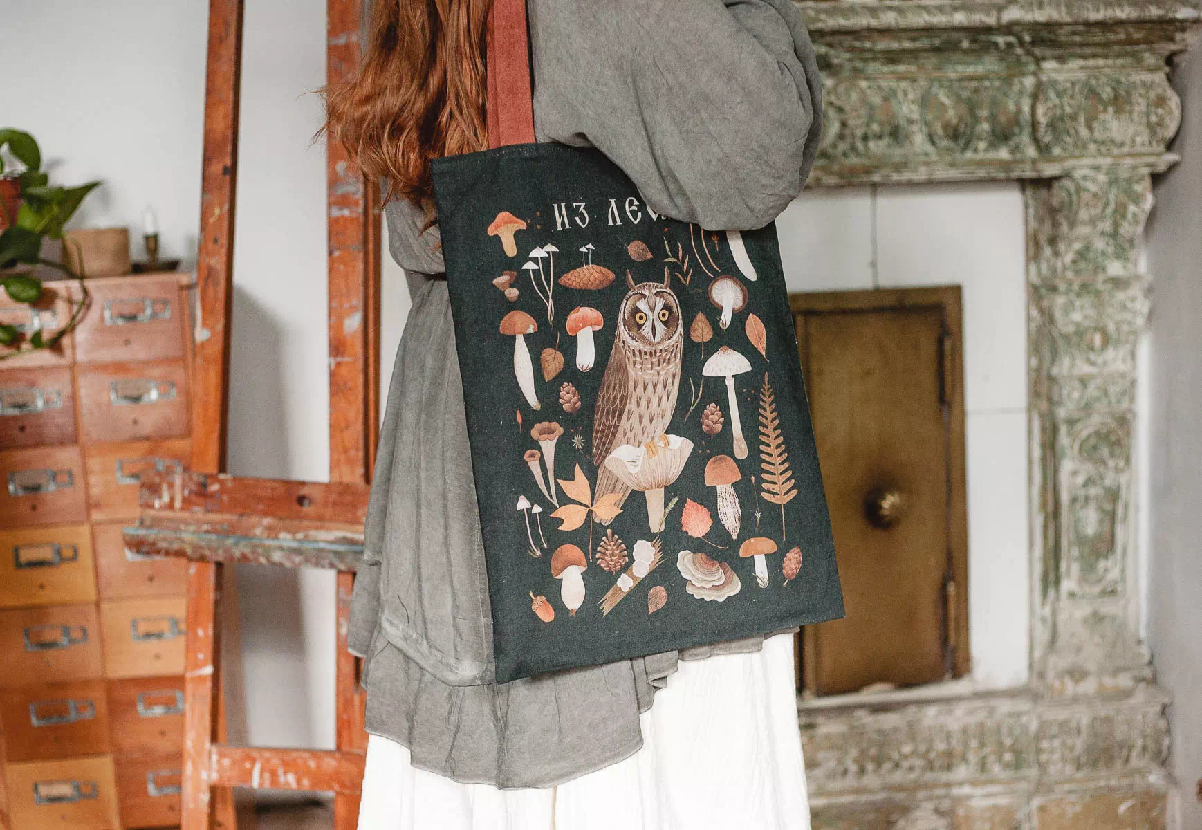Сумка-шоппер «Сова» с авторским принтом от российской художницы Александры Дворниковой.