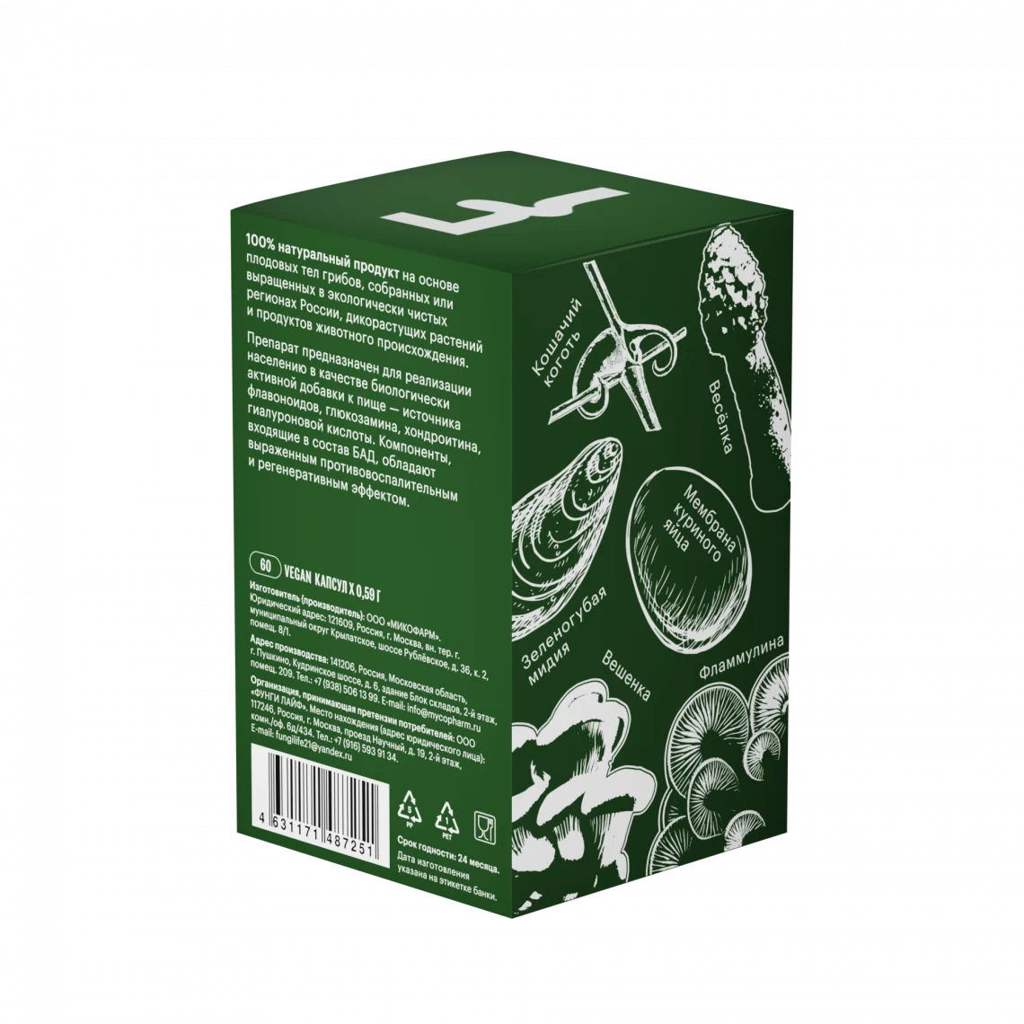 Мембрана куриного яйца — естественный источник хондроитина, который играет ключевую роль в поддержании прочности и эластичности суставных поверхностей. Экстракт зеленогубой мидии дополнительно питает хрящевую ткань, способствуя ее восстановлению и помогая предотвращать дегенеративные изменения.